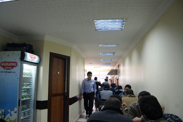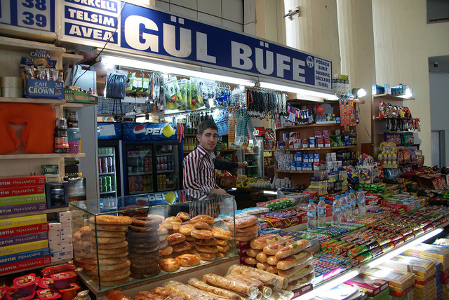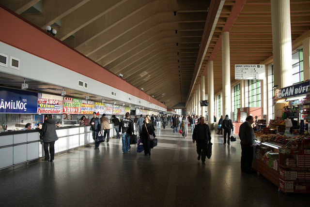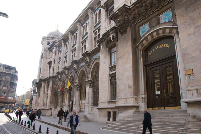 我們先回到Sirkeci火車站附近,因為這邊有一間很大的PTT,雖然說PTT好像到處都有,可是要找的時候也不是隨時都找的到,而且土耳其很怪的一點是小攤販或雜貨店都不賣郵票的,所以要寄回台灣假如不想給飯店就要到PTT櫃檯寄。這個PTT裡面裝潢的也很不錯,可是我才剛拿起相機警衛就馬上過來制止,原來他們裡面是不能拍照的。另外假如要寄明信片是不需要抽號碼牌的,有專門的窗口是處理郵寄,所以我們就趁這時候把該寄的明信片寄回台灣﹝0.9 TL﹞。