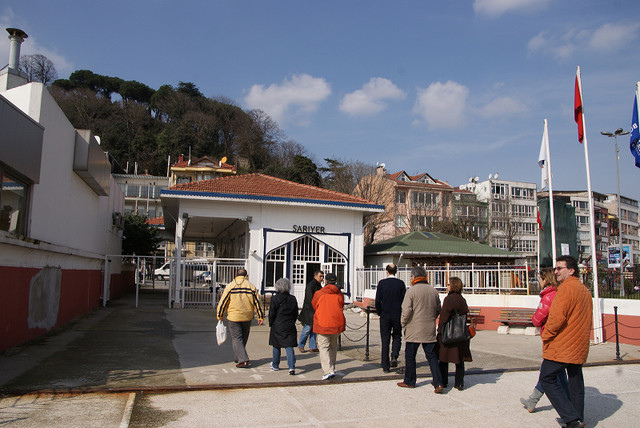 過了大橋之後我們就在Sarıyer下船,Sarıyer是個很傳統的小漁村、工人階級的城市,現在這邊有許多的海鮮餐廳、烤肉店,吸引了Istanbul人來這邊吃喝。整個城市感覺很寧靜,小孩就在港邊的廣場玩耍、許多人在港邊散步,城鎮的街上人不多,但是可以感覺這邊就是這些人生活的所在地,他們在這邊的小清真寺祈禱﹝我就不敢進去參觀這種清真寺﹞、在街上的超級市場購買生活用品﹝店員英文都不會的﹞,在這邊散步還滿舒服的。