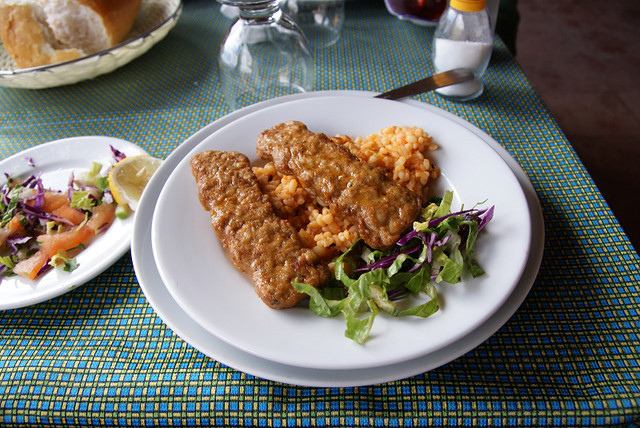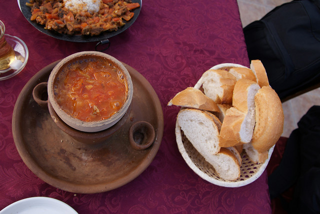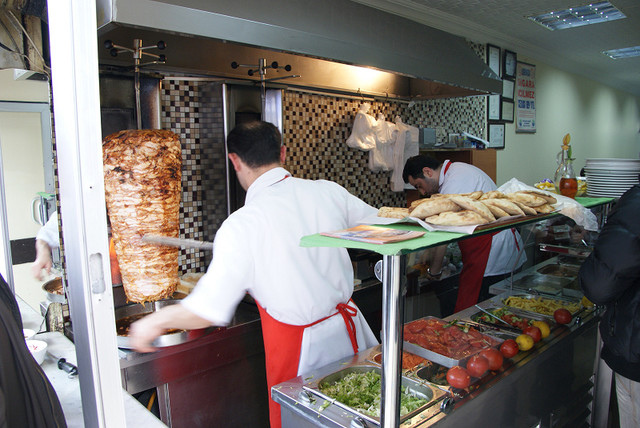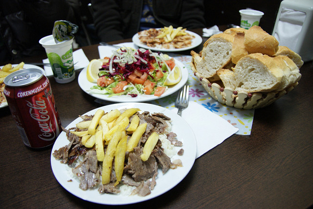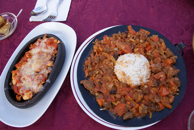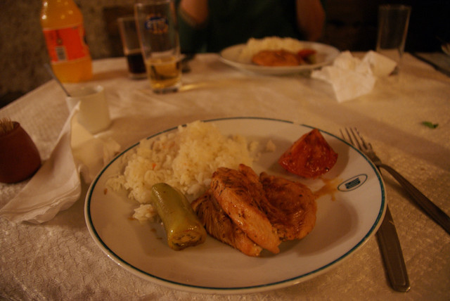我們就在這邊吃午餐,餐廳當然就是看哪間店人多就進去湊熱鬧。這間小店也是賣Kebap的﹝牛10 TL﹞,我們點的是套餐,滿滿的一盤肉、飲料,然後還有生菜。這邊的雞肉很棒,尤其用的醬料很特殊,醬烤出來的雞肉很香又有味道,幾乎可以說是我們這樣一路玩下來數一數二的。