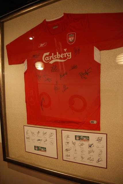 因為沒來過的關係,所以我先到處晃晃。在走道區有一件Liverpool的球衣,球衣的上和下面的簽名板有許多簽名,可惜我對Liverpool球員比較不熟,所以認不太出來。