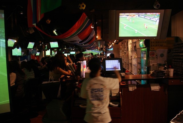 今年世界杯只剩下倒數的兩場比賽。看了這麼多的賽事可是我卻一直沒有機會去sports bar體驗那種氣氛一直是心中的遺憾﹝從05年就開始嚷嚷的說要去Brass Monkey看F1,可是一直耍龜到現在還沒成行過﹞,所以就擇期不如撞日直接衝今天的世界盃季軍戰,而且要是這次再不去看球的話四年後的巴西世界盃大概也不太可能去看球了!