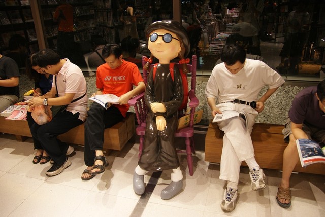 他們在大廈中庭的庭院,弄成了戶外的吸菸區。假如癮君子的話可以就在這邊抽菸、看球賽,唯一的缺點就是這是在戶外,沒有空調,加上今天天氣又滿悶的,不是很舒服。